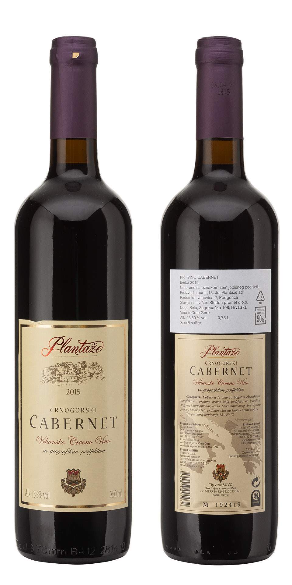 *CABERNET SAUVIGNON PLANTAŽE 0.75L 13,5% ZP SUHO 2020