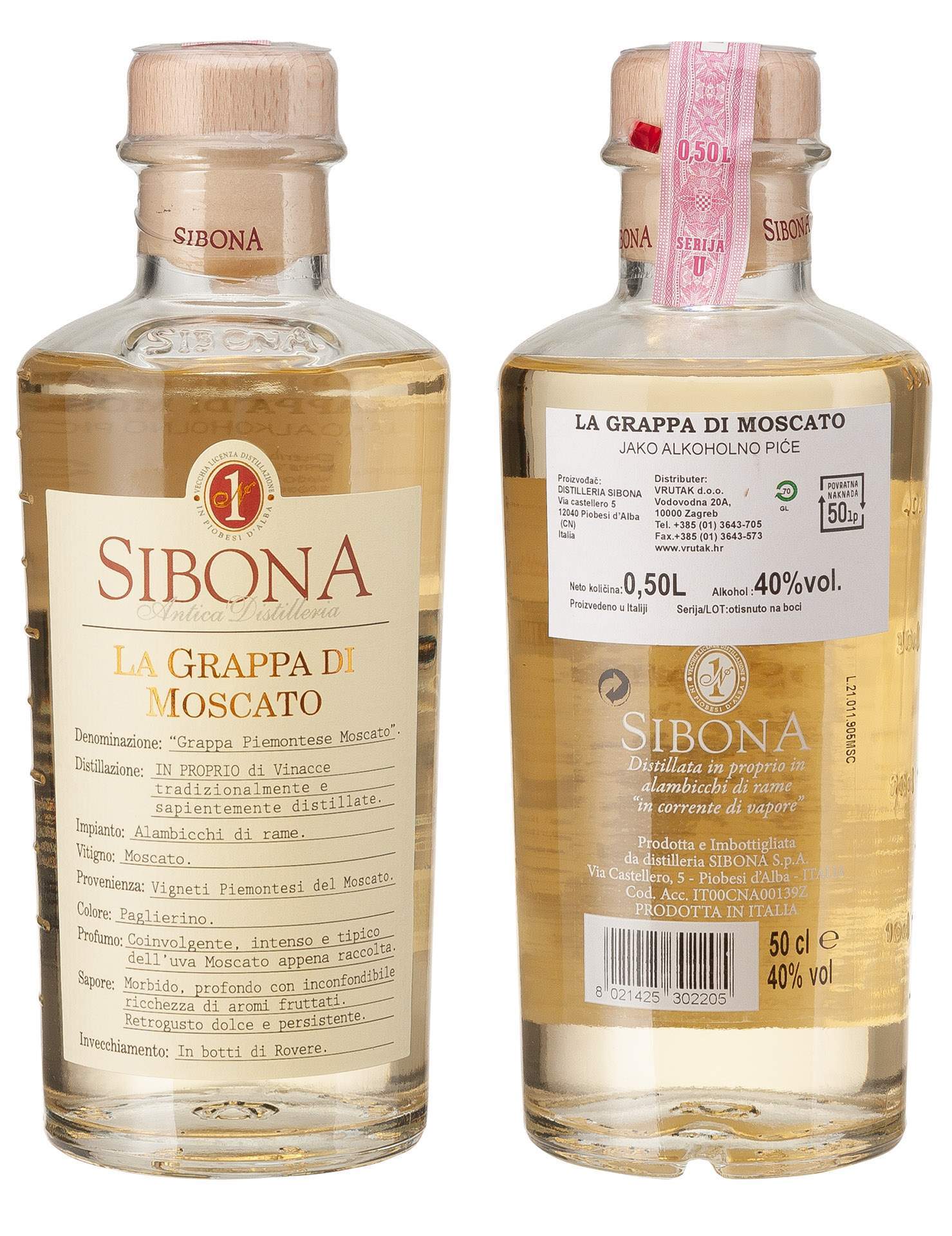 *RAKIJA GRAPPA DI MOSCATO 0,5L - SIBONA -6/1-