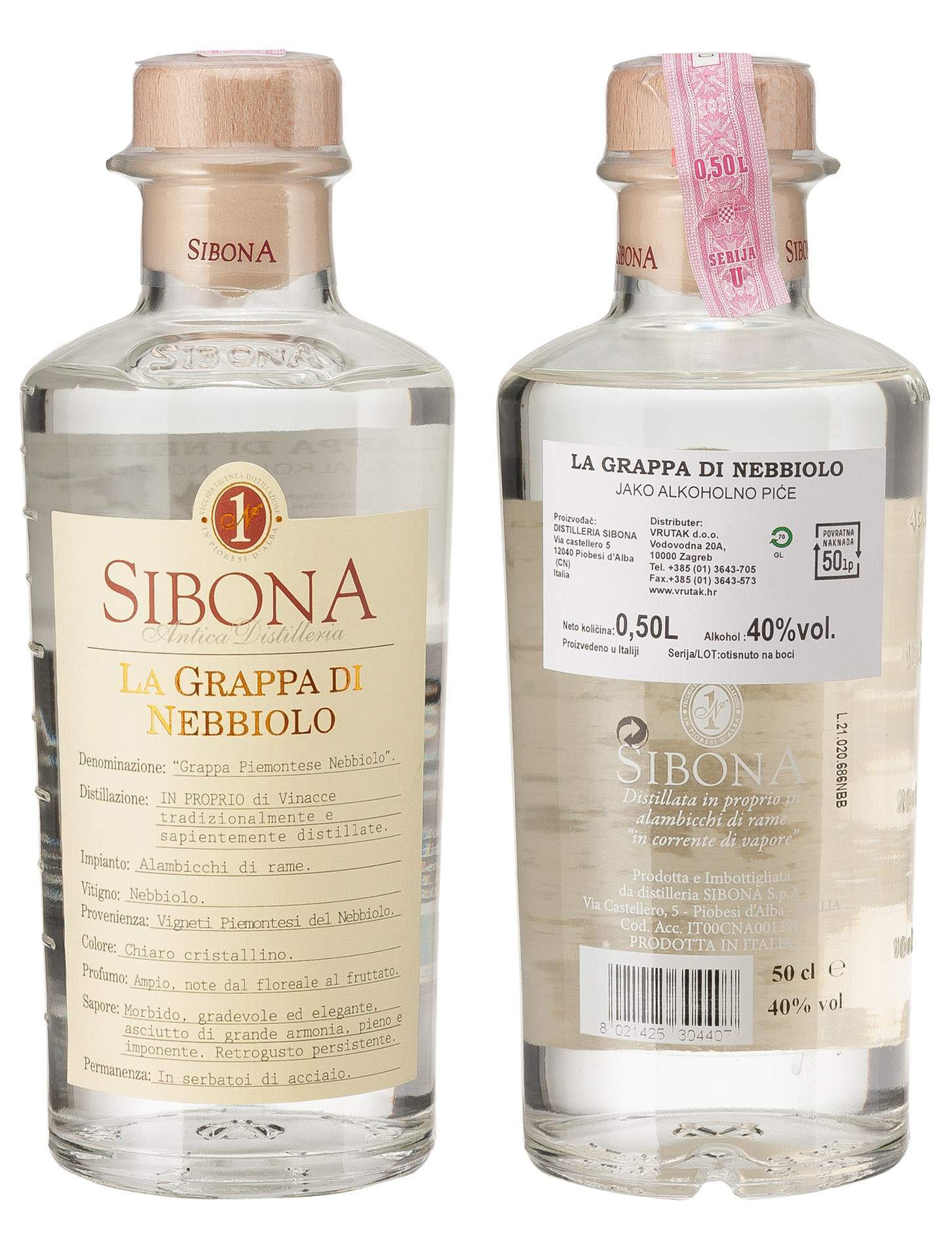 *RAKIJA GRAPPA DI NEBBIOLO 0,5L - SIBONA -6/1-