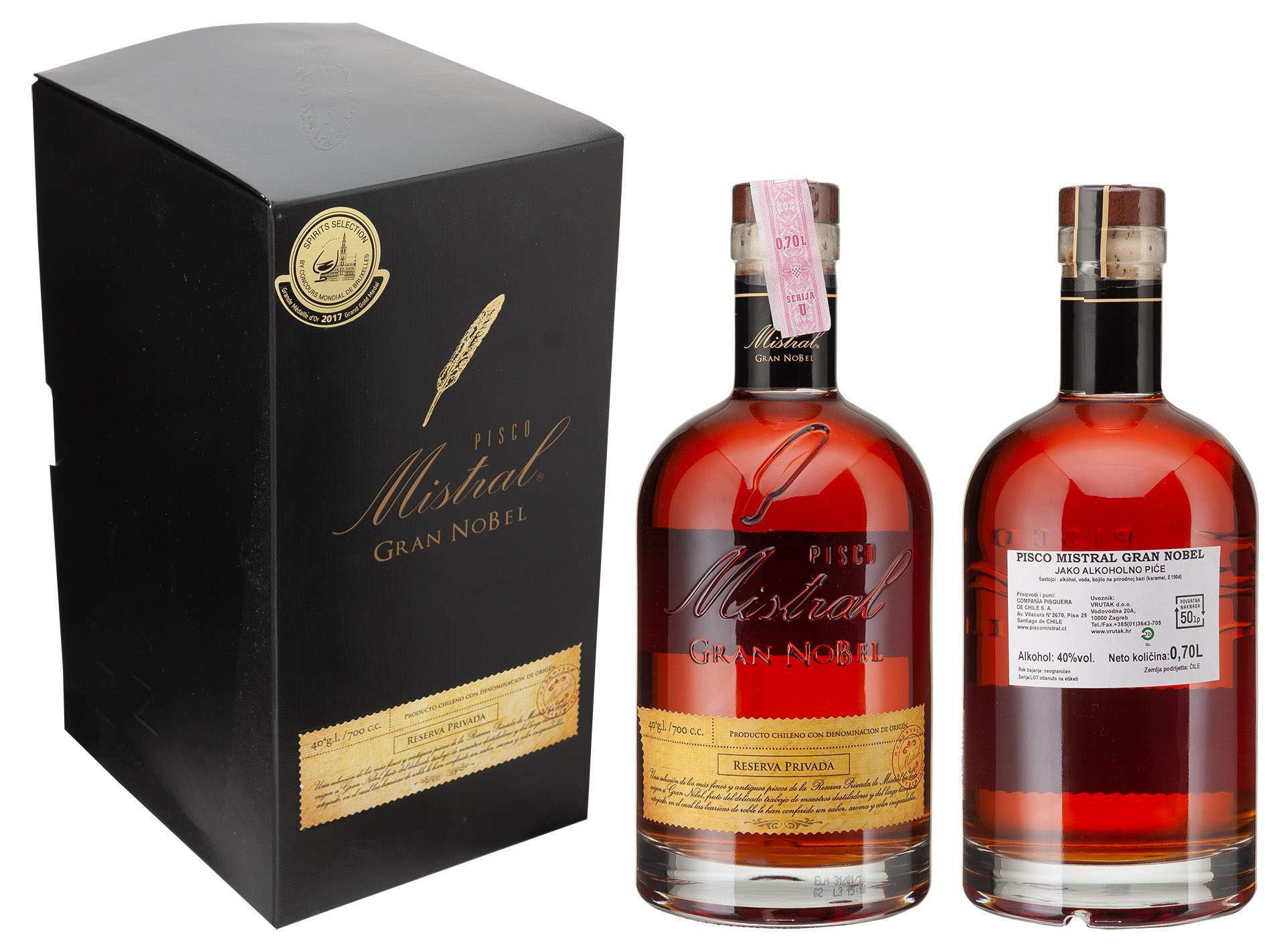 N-*RAKIJA PISCO MISTRAL GRAN NOBEL 0.70 L RESERVA.PRIV. 40% GIFT -4/1-