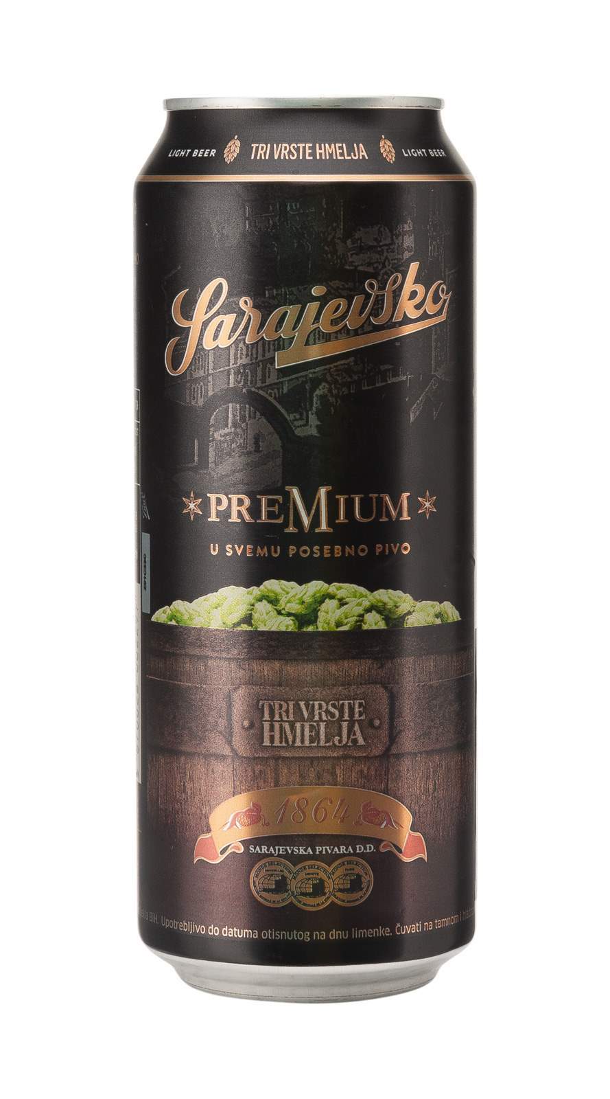 N-*PIVO SARAJEVSKO 0.50L TRI VRSTE HMELJA -24/1- 4.9%ALC PREMIUM LIMENKA