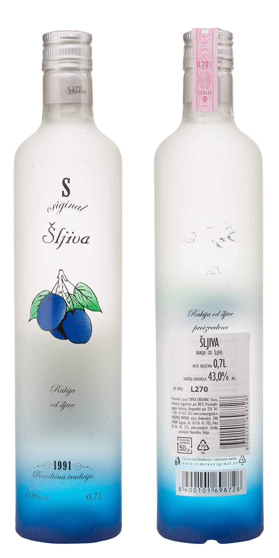 *RAKIJA ŠLJIVOVICA S-LINE SIMEX 0. 70L ALK.43% -6/1-