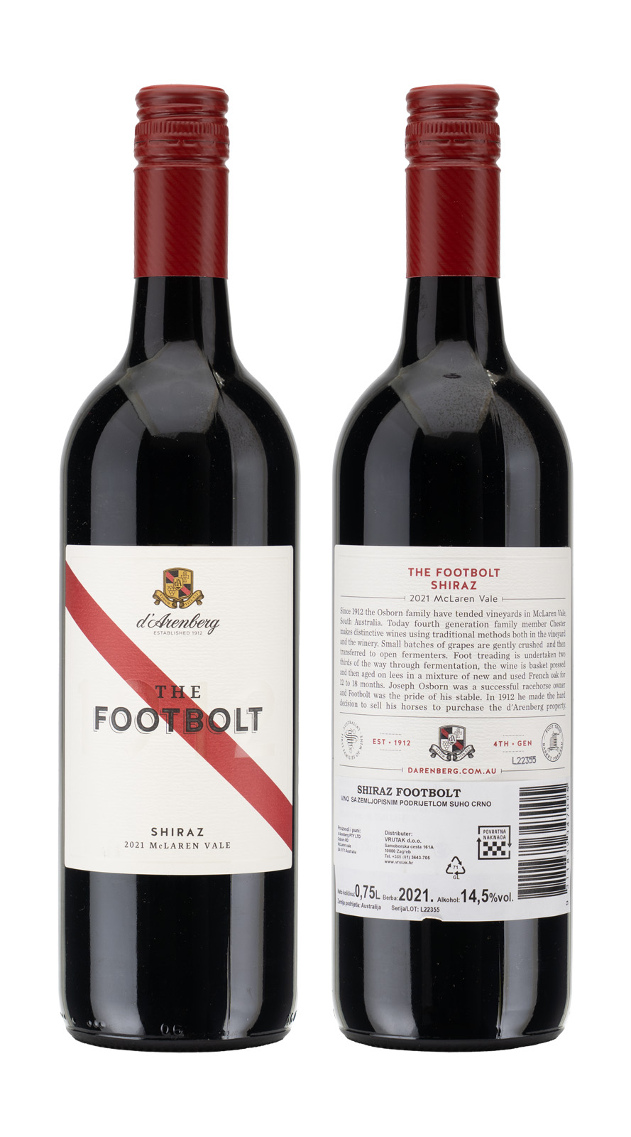 *SHIRAZ FOOTBOLT D'ARENBERG 0.75L 2021. -6/1-