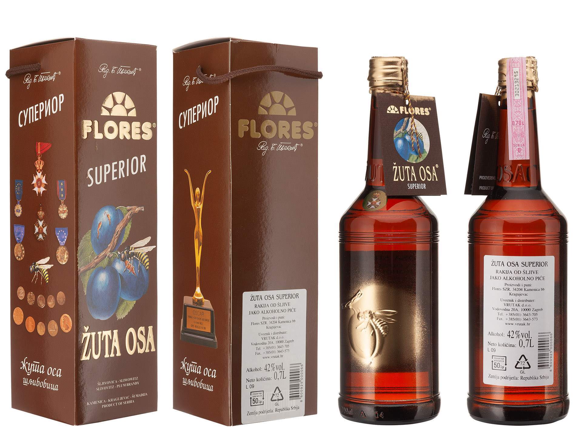 *RAKIJA ŠLJIVOVICA ŽUTA OSA SUPERIOR 0,70L ALK.42% -6/1-
