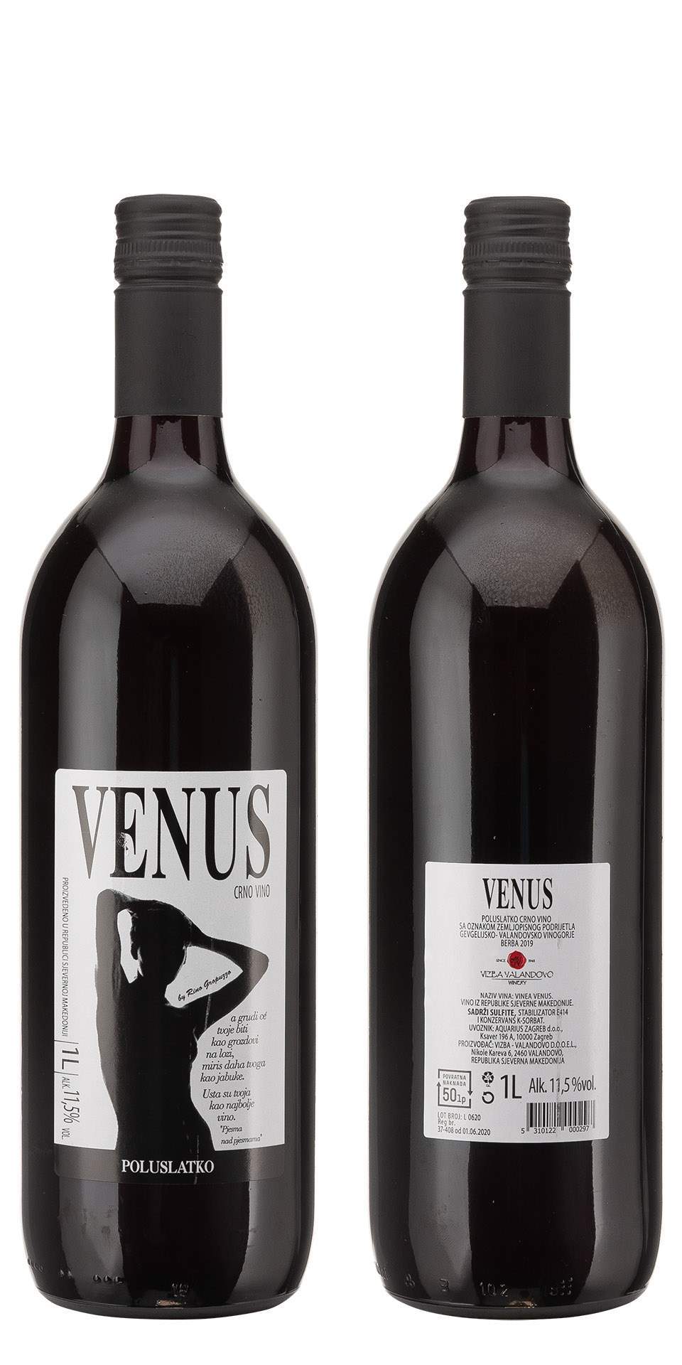 *VENUS 1L CRNO ZP POLUSLATKO 2022 STAKLO -6/1-